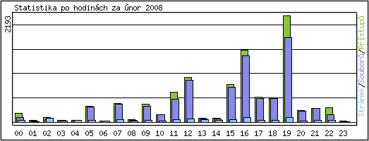 | Hodina | Přístupů | Souborů | Stránek | Návštěv | Objem přenosu |